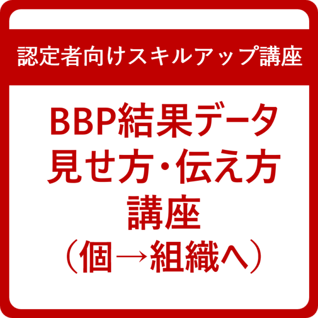 認定者向け講座・継続学習|【認定者向けスキルアップ講座】BBP結果データ見せ方・伝え方講座(個→組織へ)